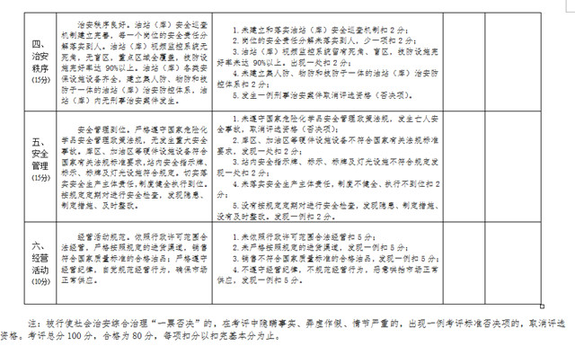 (五)安全管理到位。严格遵守国家危险化学品安全管理政策法规,无发生重大安全事故。库区、加油区等硬件设施设备符合国家有关法规标准要求,站内安全指示牌、标示、标牌及灯光设施符合规定。切实落实安全生产主体责任,制度健全执行到位。按规定定期进行安全检查,发现隐患、制定措施、及时整改。