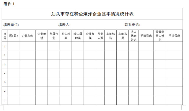 附件:1. 汕头市存在粉尘爆炸企业基本情况统计表