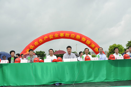 6月25日上午,由市人民政府主办,市安委办、龙湖区人民政府承办的“汕头市生产安全事故应急救援演练”在广东仙乐制药有限公司生产厂区举行。市委常委、常务副市长郑通声担任了这次演练总指挥,市应急办、公安、消防、安监、环保、卫生、气象、供水、供电以及新津街道办事处等11个单位参加了演练。各区县分管领导和市安委会有关成员单位、重点企业负责人在现场观摩了演练。