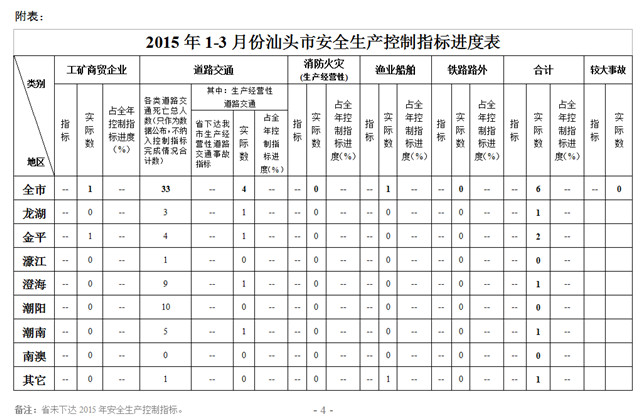 附表:2015年1-3月份汕头市安全生产控制指标完成情况表