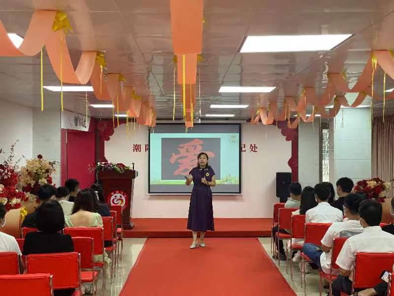 潮阳区举办“共建幸福家庭”婚前辅导讲座。活动现场围绕“何为婚姻?为何会有婚姻冲突?何为家庭中正确的爱的序位?何为爱的五种语言?何为幸福婚姻?收获幸福婚姻的七大法则”等方面展开具体阐述,引导夫妻双方更加清晰地了解婚姻冲突出现的原因,认识到正确的爱的序位,学会如何运用爱的语言和幸福婚姻法则,用爱浇灌婚姻,共同建设美好幸福家庭。
