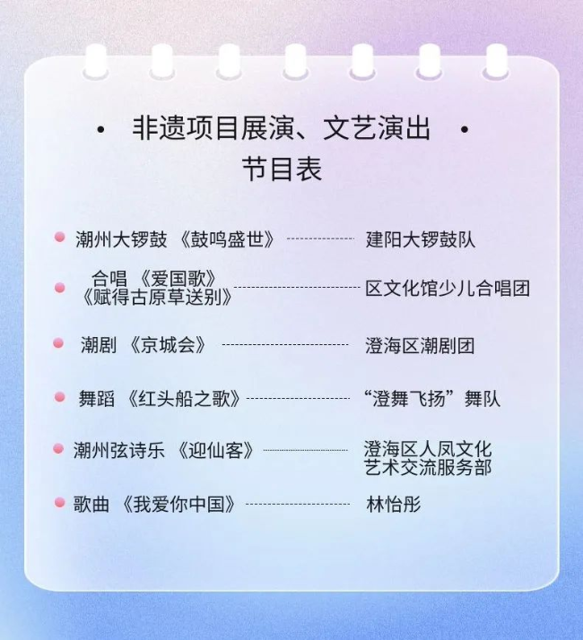 1、现场将为澄海区第9批区级非物质文化遗产代表性项目保护单位颁发证书、牌匾;