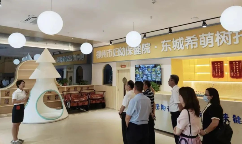 调研组一行参观了全国首批“婴幼儿养育照护示范指导中心”——柳州市妇幼保健院,参观了指导中心的环境、设施,并与柳州市卫健委,柳州妇幼保健院座谈交流,了解了柳州市托育服务发展现状、指导中心的工作内容与运营模式。