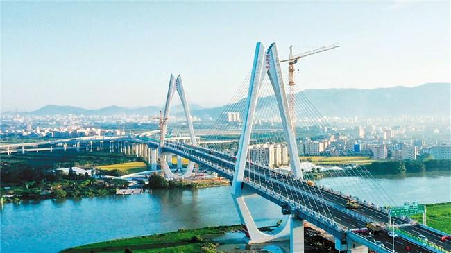 (潮汕环线高速三期工程京灶大桥连接汕头、揭阳两地。记者陈史 摄)