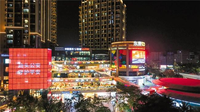 以光影为画笔,以建筑为载体,以城市景观为舞台,夜幕下璀璨灯光交相辉映,在我市的万象城、苏宁广场、东厦100、海湾隧道塔、合胜广场大屏幕、南澳县南信海上东方广场等处,都可看到“庆祝第五个中国人民警察节”“对党忠诚、服务人民、执法公正、纪律严明”“平安守护 温暖你我”等亮眼标语致敬中国人民警察节,不少市民朋友还拍摄现场照片转发到朋友圈,也引发了更多人的关注与点赞。“致敬每一位守护你我平安的人民警察,这不仅是一句口号,更是我们群众的共同心声”,当天晚上,和家人逛万象城的市民郑先生用手机录下现场小视频发给朋友,他说:“平安是城市最重的底色,社会安全有序,百姓安居乐业,为每一位警察同志点赞,你们辛苦了!”
