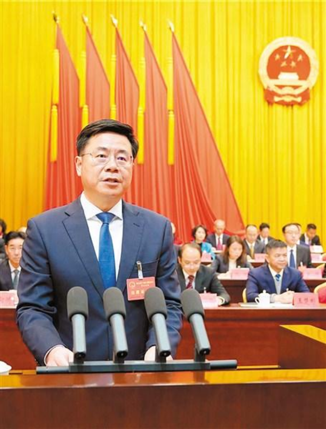 (市长陈涛作政府工作报告。 记者方淦明 摄)