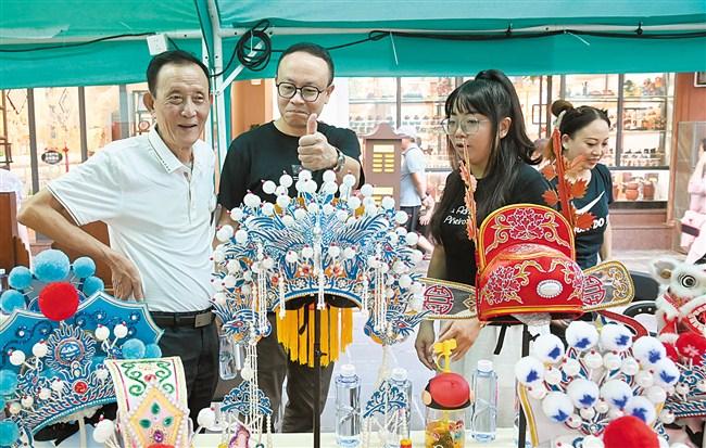 13日下午,市集现场人来人往,热闹非凡。活动精心组织了15个项目,非遗传承人、工艺美术大师现场献艺,生动展现了印章镌刻、潮汕木雕、潮汕嵌瓷、潮剧盔头制作、潮绣、剪纸、瓦片画、瓶内画、茶艺、潮汕手钩花等非遗技艺之美,尽显龙湖非遗的“匠心之美”与“创新之潮”。龙湖区非遗瓦片画传承人陈思华表示,希望通过瓦片画这个载体让年轻人更加了解潮汕特色文化,更加热爱潮汕。