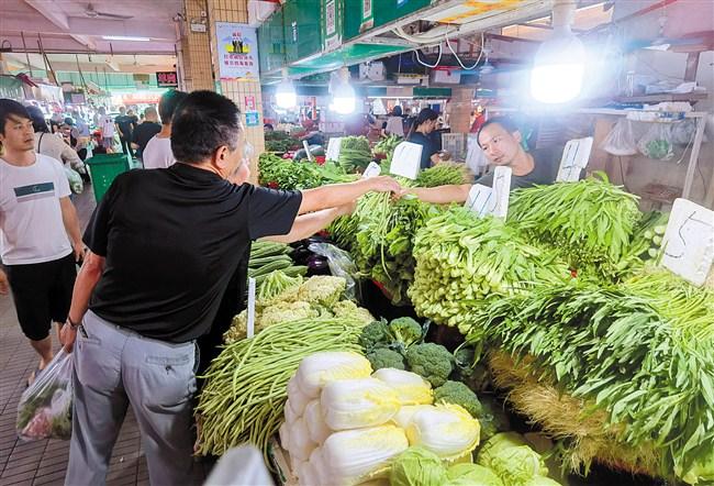 从各类商品及服务价格环比变动情况看,10月我市食品价格上涨0.7%。食品中,受冷空气活动频繁、降雨和台风后续影响,蔬菜生长缓慢、运输受阻,鲜菜市场供应阶段性趋紧,鲜菜价格上涨4.7%;当前生猪供应充足,市场消费需求较为疲软,猪肉价格下降0.4%;夏季水果逐步下市,鲜果供应季节性减少,价格上涨1.7%。与此同时,非食品价格上涨0.3%。非食品中,服务价格上涨0.2%,其中,受国庆、中秋假期影响,本月居民出行、出游和住宿需求增加,在外住宿、飞机票和旅行社收费价格分别上涨20.6%、16.1%和4.8%;工业消费品价格上涨0.4%,其中,国际金价持续走高,影响铂金饰品、金饰品价格分别上涨18.1%和10.8%,受国内成品油价格调整影响,柴油、汽油价格均下降0.9%。