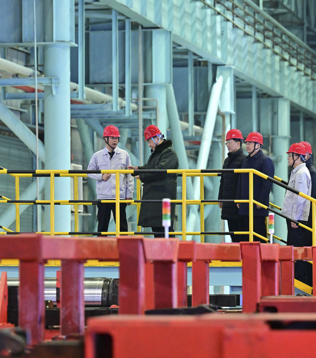 (1月22日至24日,中共中央总书记、国家主席、中央军委主席习近平冒着严寒来到辽宁,看望慰问基层干部群众。这是23日下午,习近平在本溪市考察本钢板材冷轧总厂第三冷轧厂车间。新华社记者 翟健岚 摄)
