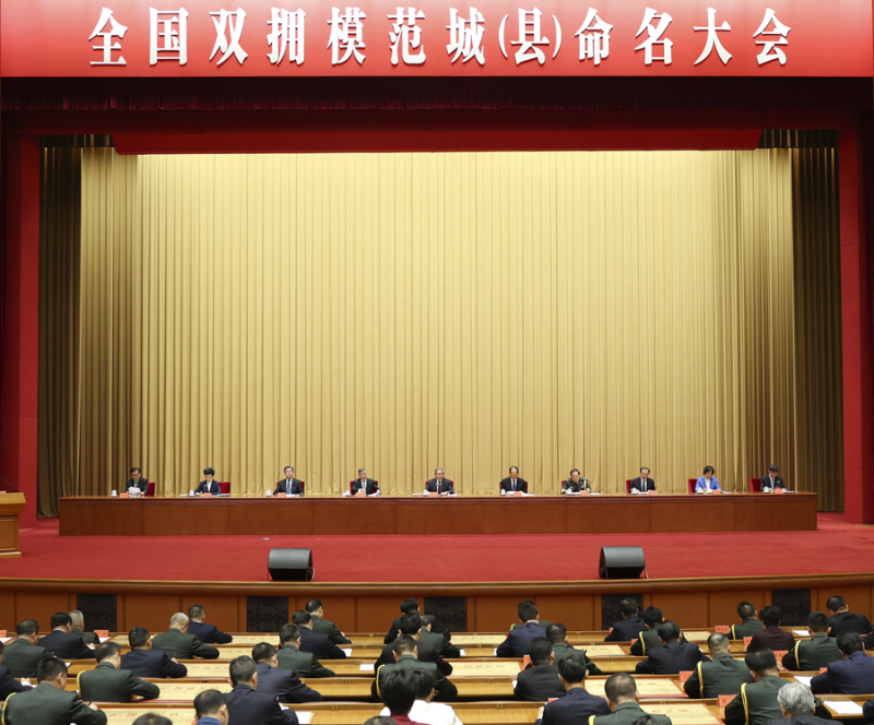 大会宣读了关于命名全国双拥模范城(县)的决定,并为全国双拥模范城(县)代表颁奖。有关军地代表作了发言。
