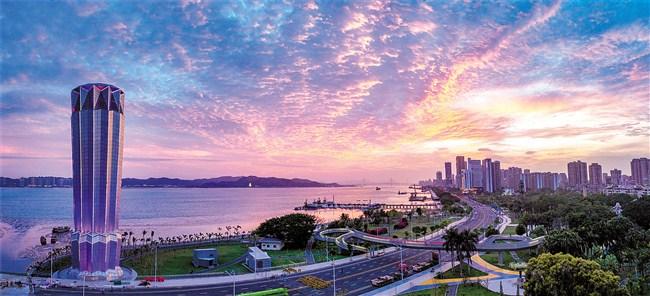 近日,傍晚时分,鮀城笼罩着橙红色的光辉,西沉的太阳仿佛把天边的云朵点燃,波光粼粼的内海湾也被浸染成了金色。橘红、绛紫的霞光在云层中翻涌,天空像打翻了的颜料盘。归航的渔船划破水面,船舷拖曳着长长的光影,与天边渐暗的云霞交织,勾勒出一幅静谧而绚烂的海滨暮色画卷。远处,海天相接处,火烧云似要与大海融为一体,美得如梦如幻。