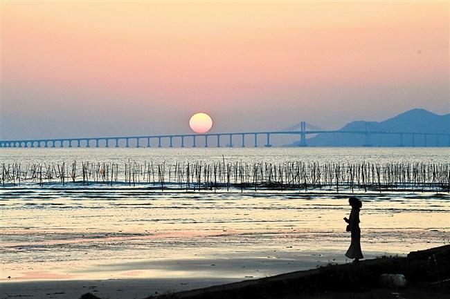 昨天早上5时32分,澄海区莱芜岛紫菜养殖基地迎来绝美日出。清晨,天边渐染微光,金色的阳光洒在错落有致的养殖筏架上,浮光跃金,这一美景吸引众多摄影爱好者前来观赏和拍摄。莱芜岛紫菜养殖基地不仅是海产的孕育之所,也是观赏日出的绝佳之地。