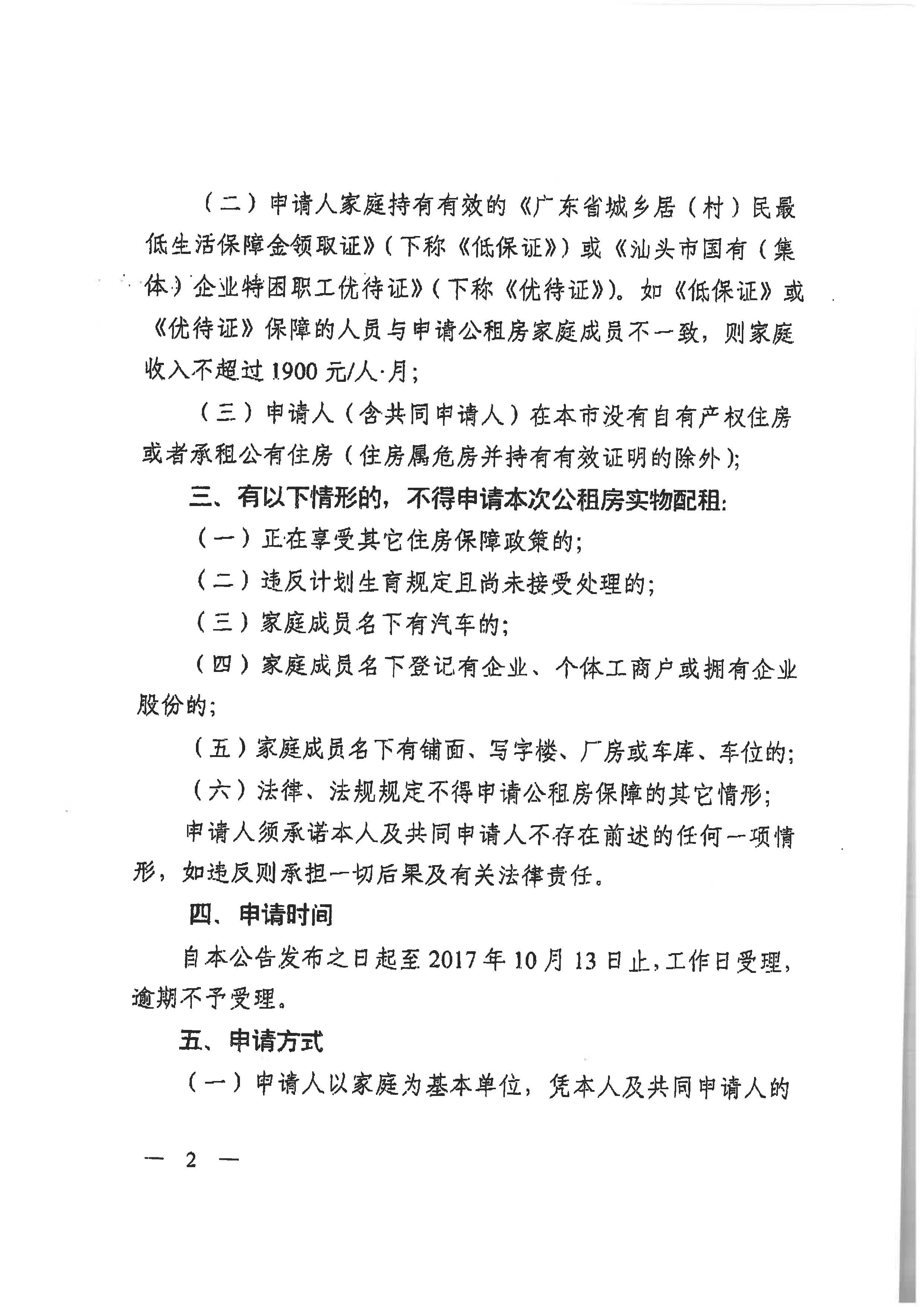 关于2017年度汕头市市本级第二批公租房实物配租准入标准的公告