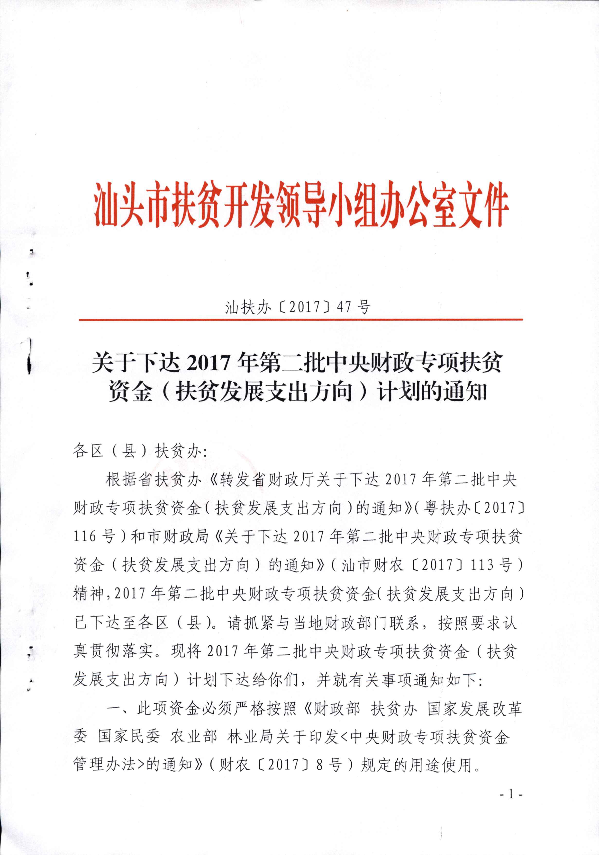关于下达2017年第二批中央财政专项扶贫资金(扶贫发展支出方向)计划的通知