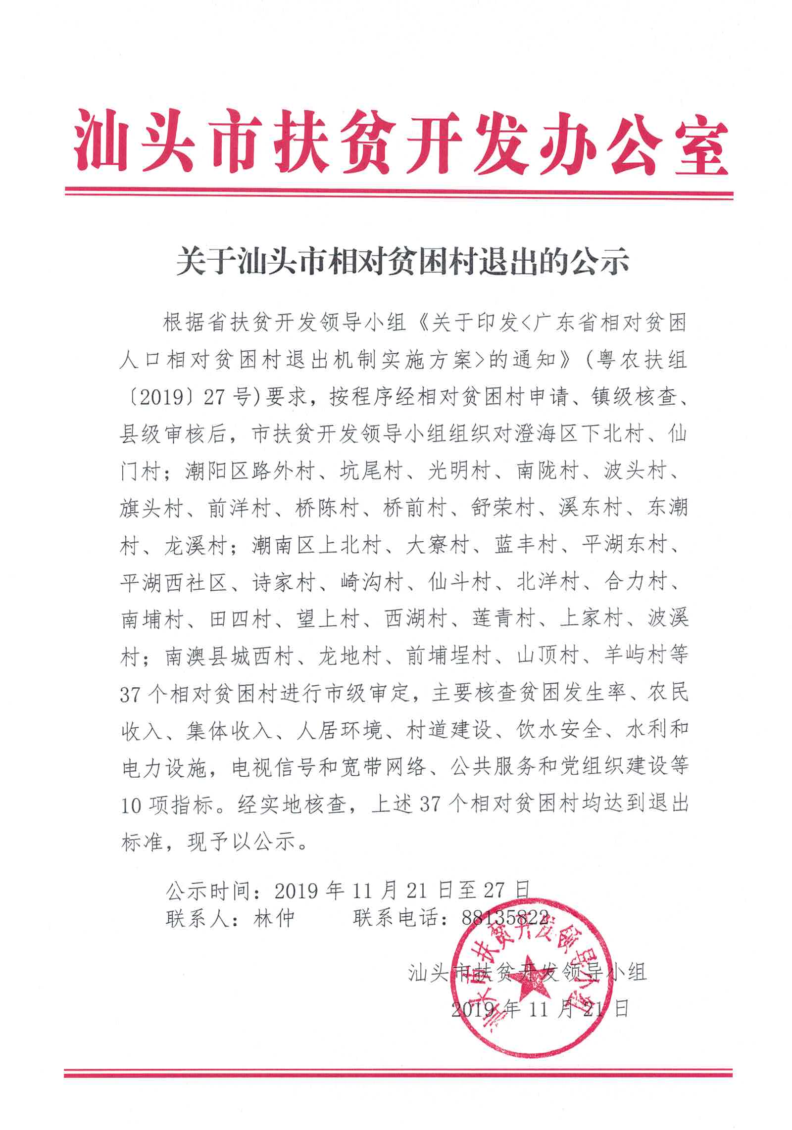 关于汕头市相对贫困村退出的公示