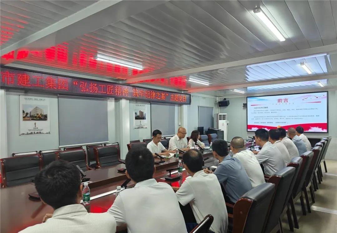 20日上午,在汕头高铁站枢纽一体化东广场工程项目部,市属国有企业市建工集团开展“弘扬工匠精神,筑牢纪律之基”主题党日活动,将理论知识带进一线,把党课搬到工地上。党员干部们学习党规党纪,开展警示教育。