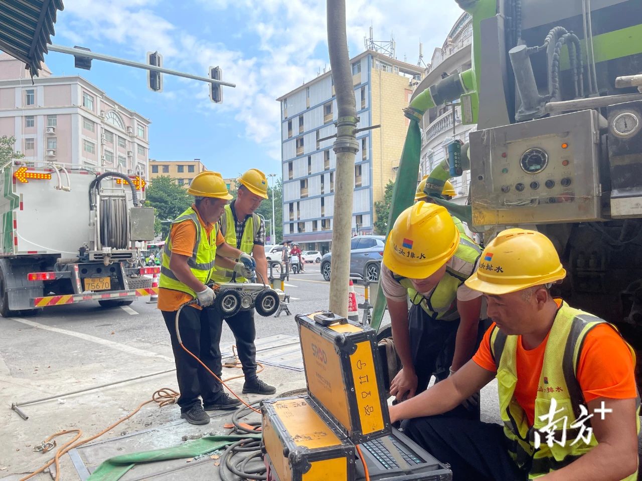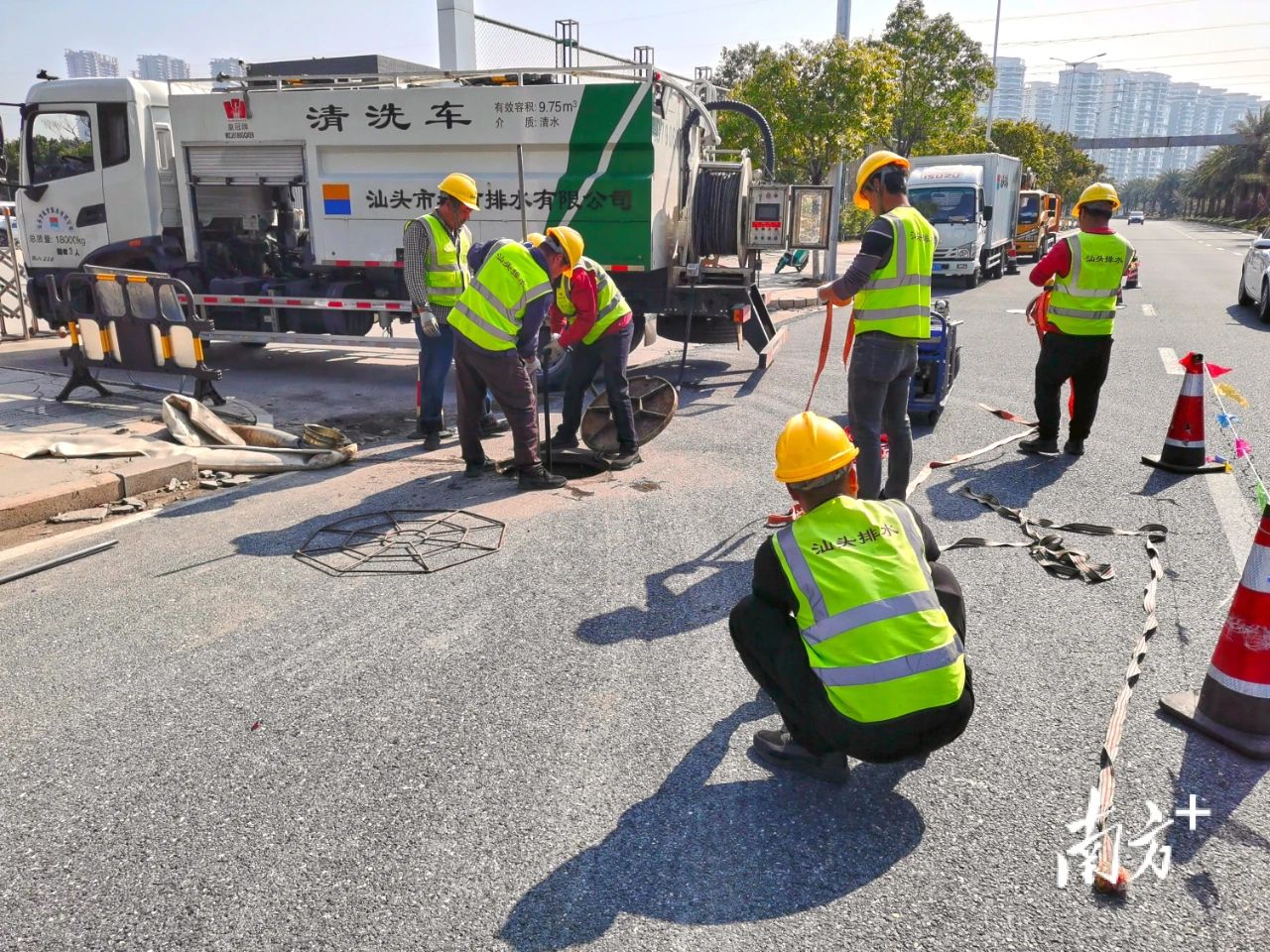 每周一到每周六的清晨,汕头市排水公司管网养护队伍5时半便开始管网清疏作业,同时还有一支专业技术队,利用早、晚高峰以外的时段专门负责重点管段的检测摸查。