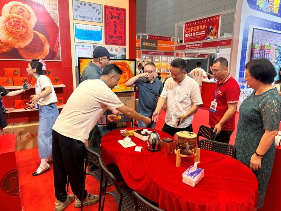在此次展会上,糖烟酒公司在“百年老字号”展区为广大游客展示了3大品类产品:潮汕经典饼食、潮汕经典茶配、潮汕特色酒。其中,糖烟酒公司旗下的“太阳观”朥饼作为一个具有近百年历史的国企老字号品牌,在潮食展活动现场精彩亮相,唤醒了潮汕人及海内外华侨对“太阳观”朥饼的记忆。一直以来,“太阳观”老字号品牌将传统美食与潮汕文化相互融合,细腻地诠释着潮汕侨胞与家乡之间的情感纽带,其传统的蛋黄乌豆沙、绿豆沙、双烹以及腐乳饼倍受广大市民朋友的追捧,乌豆沙朥饼及绿豆沙朥饼更是曾于1987年荣获“省质量奖优质产品”称号;近年来,“太阳观”品牌不断推陈出新,新开发的老香黄、陈皮、黄皮等特色口味也深受广大市民朋友的欢迎。