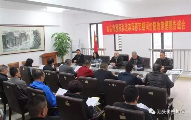 会上,市发改局价监局宣读了《关于春节期间严格执行价格政策提醒告诫书》,并就春节期间价格政策执行上可能出现的问题着重进行强调。