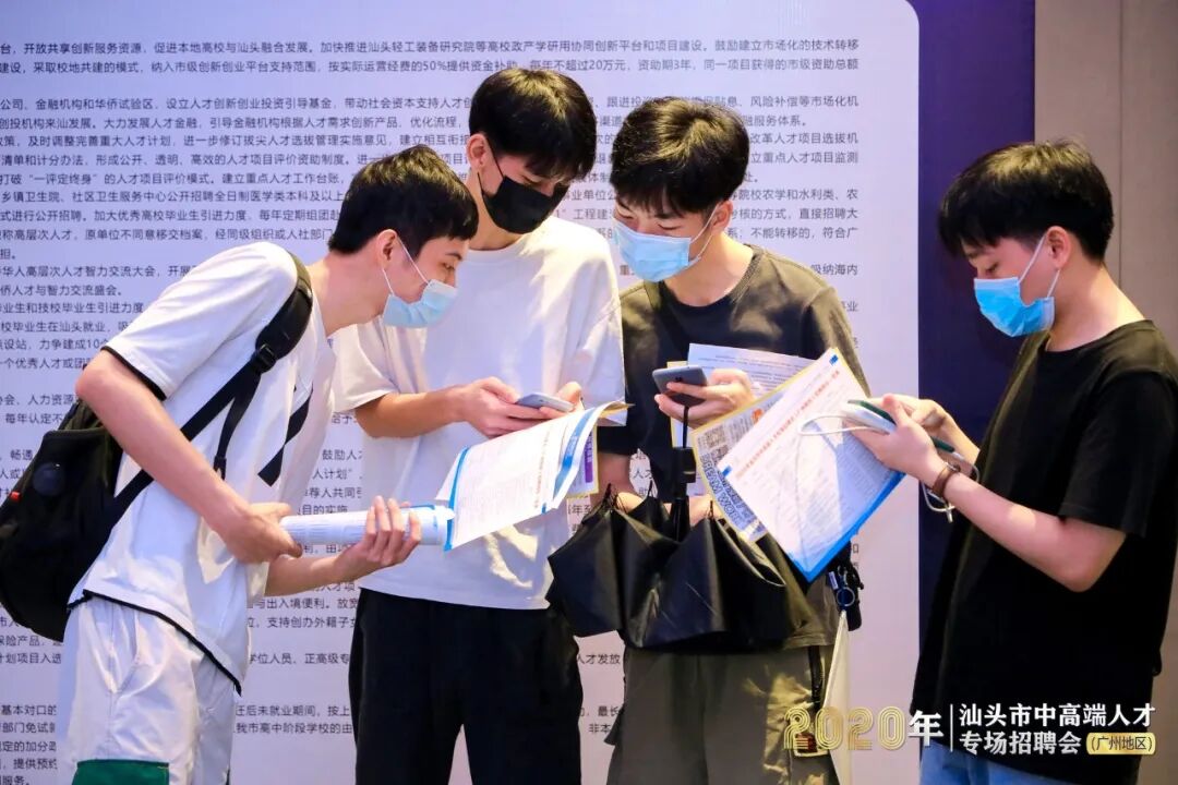 为进一步加快汕头市人才队伍建设,创新人才发展机制,落实扩大人才供给措施,汇聚人才助力经济高质量发展,市委组织部、市人社局联合于8月23日在广州市举办“2020年汕头市中高端人才专场招聘会(广州地区)”。 本次活动共有40家生物医疗、生产制造、建筑地产、科研技术、文化教育等行业的规模上市企业参加招聘,提供涵盖化学工程、机械工程、IT互联网、营销管理、媒体推广等433个中高端岗位,年薪均超10万元,最高年薪达到400万。 活动前期,通过微信公众号等方式,多渠道广泛发布招聘会活动信息,大力宣传汕头市发展变化、城市形象、引才政策。同时,运用大数据筛选企业需求职位与珠三角地区人才库,向24636名符合条件的求职者发出邀请,再由专业顾问匹配、邀约应聘人员到招聘会现场面试。 活动现场,市委组织部、市人社局通过汕头市情宣传片、汕头市人才政策动画宣传片以及企业宣传画册、汕头市人才政策单张等,全方位对我市人才政策、营商环境进行宣传推介,让珠三角地区中高端人才更了解我市人才引进政策,提升引才效果。 据统计,招聘会进场人数532人,企业收到意向简历509份。通过初试进入复试83人,其中博士3人,硕士 23人,本科42人,大专15人。 本次招聘会严格实行防疫及应急措施,入口处设置测温防疫点,凭粤康码和行程码进场;同时,实施分时段预约到场应聘,严格把控同一时段进场总人数不高于200人,并做好消毒洗手液、备用口罩、测温计、粤康码和行程码指示牌等完善的防疫物资准备。此外,场内设立独立的临时隔离区,如有异常情况,快速安排隔离并转移就医。 市委组织部相关领导、市人社局主要领导出席了招聘活动,现场指导企业引才招聘并与高层次人才交流座谈。