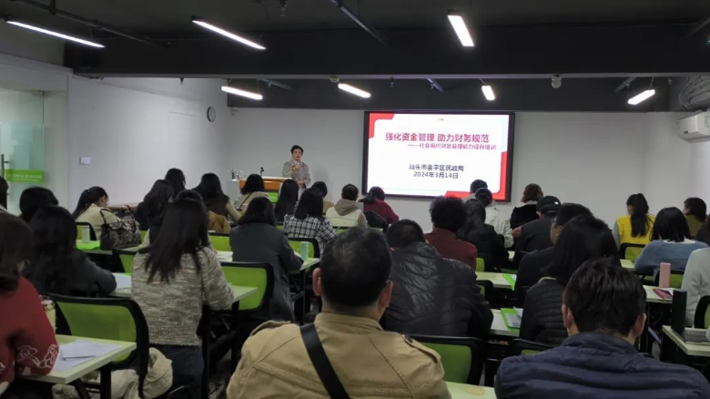 为进一步加强社会组织诚信建设,规范社会组织财务管理行为,促进社会组织健康有序发展。3月14日下午,金平区民政局联合金平区众创职业培训学校举办“强化资金管理·助力财务规范”的社会组织财务管理能力提升主题培训。来自金平区近5年来新登记的社会组织58名法定代表人或财务负责人参加培训。