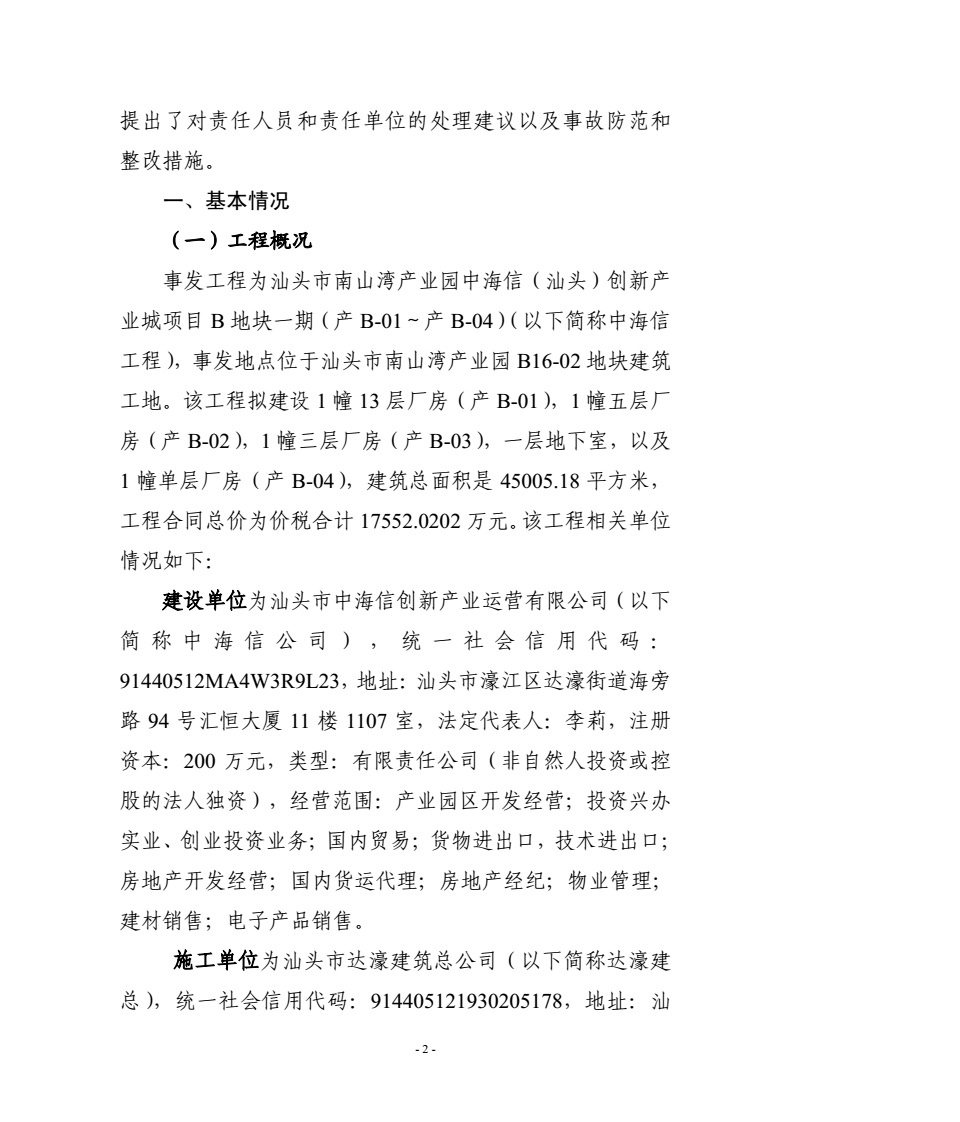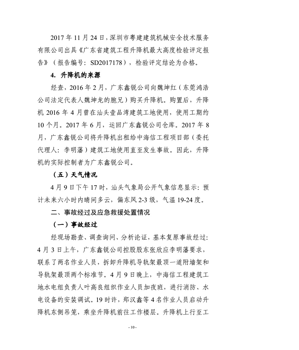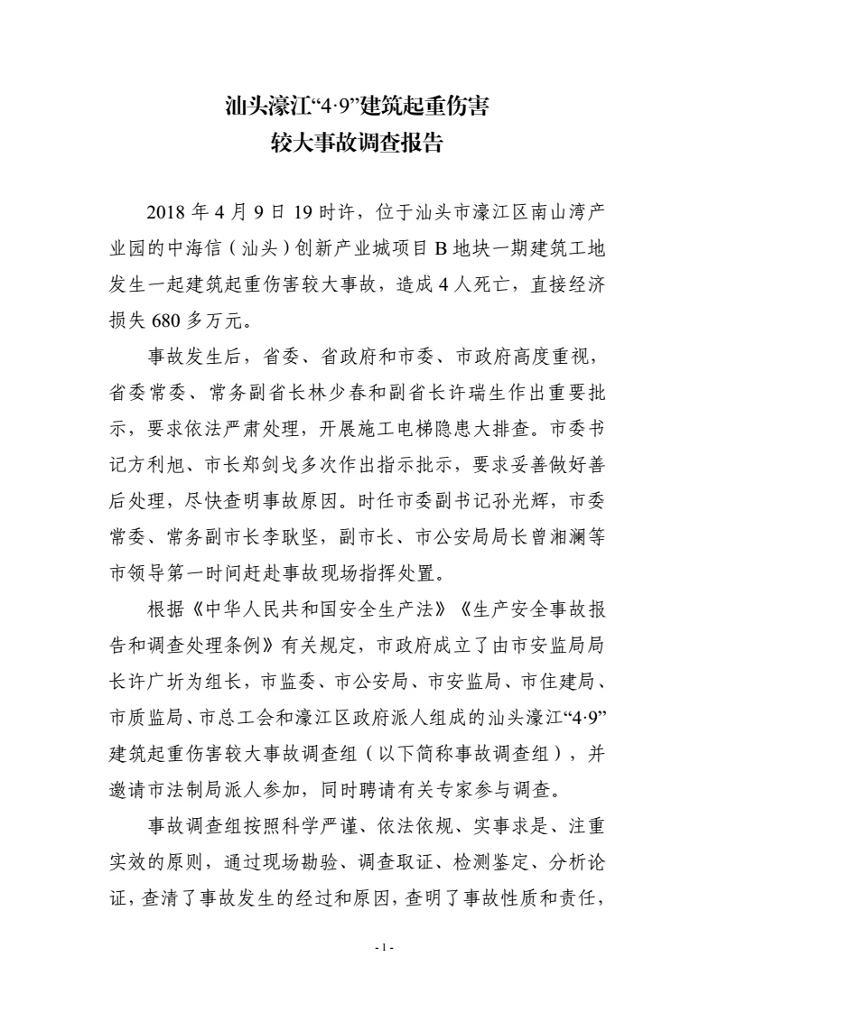 汕头濠江“4·9”建筑起重伤害较大事故调查报告