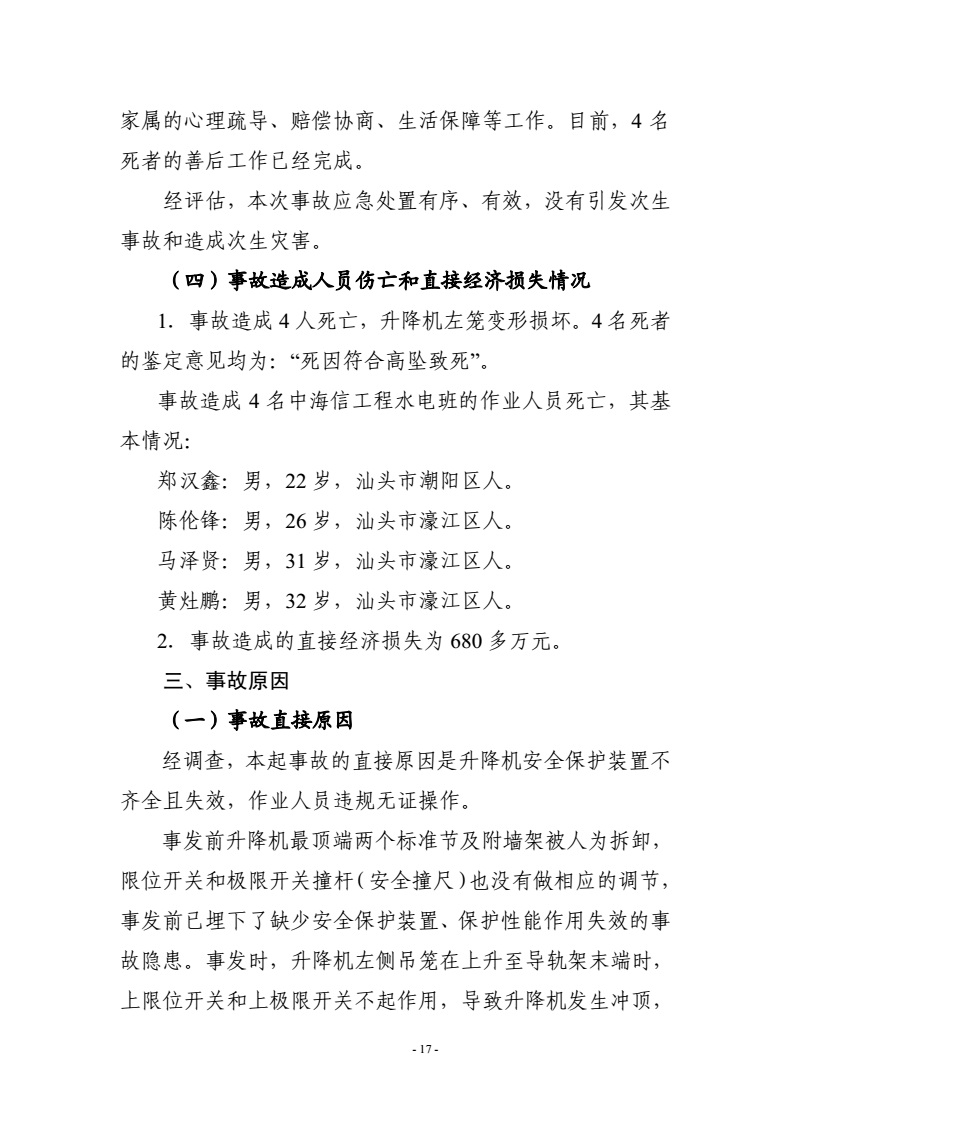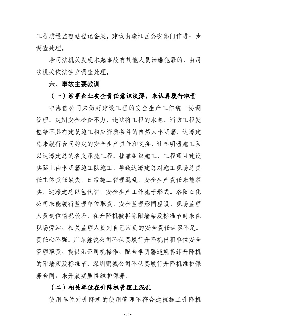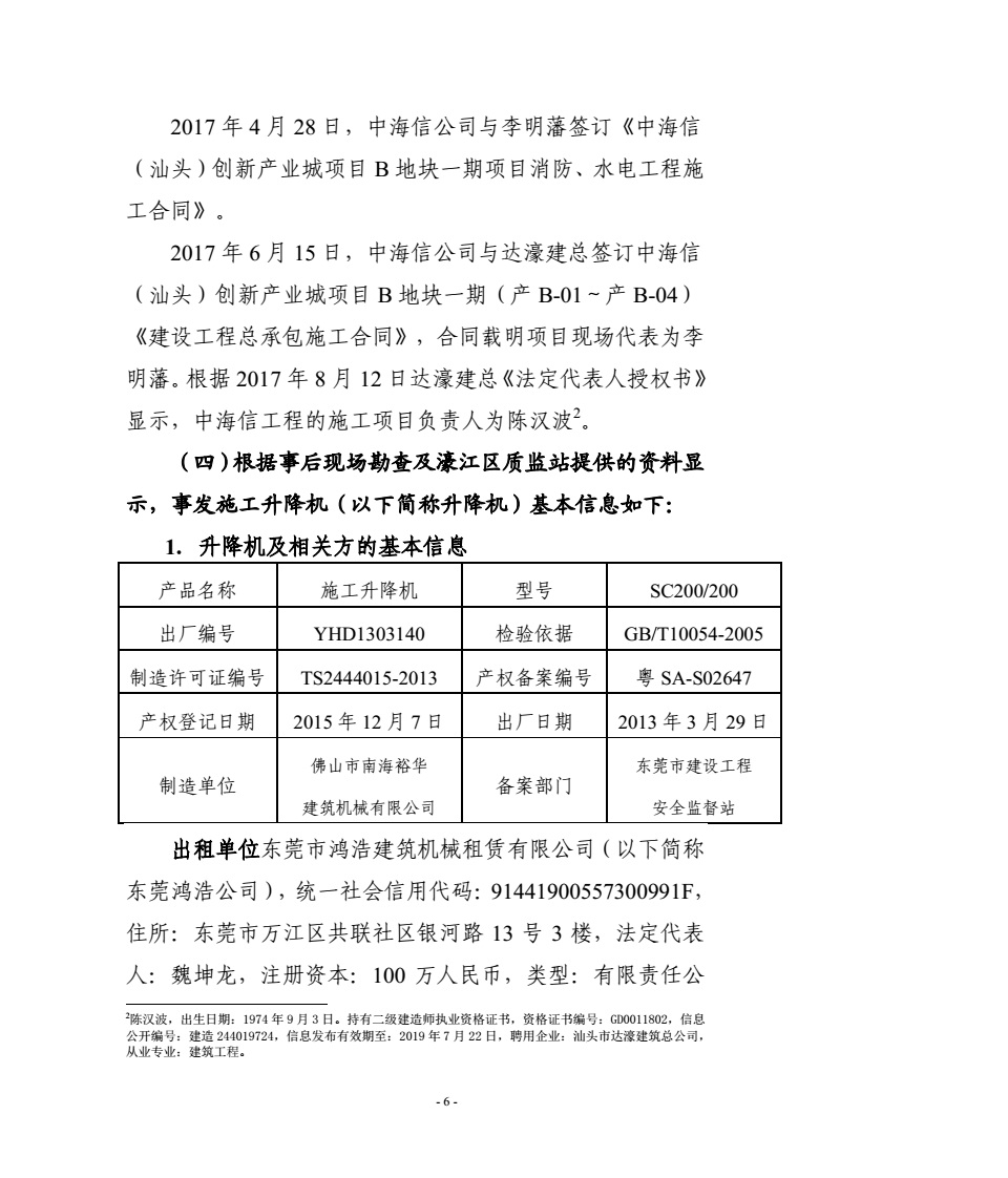 汕头濠江“4·9”建筑起重伤害较大事故调查报告