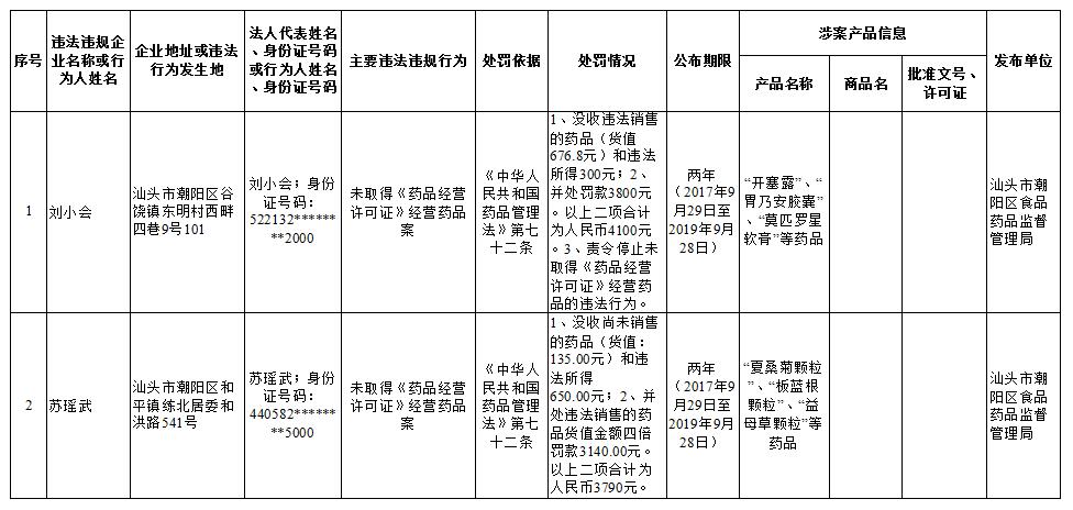 汕头市食品药品违法违规企业“黑名单”信息 (2017.9.30)