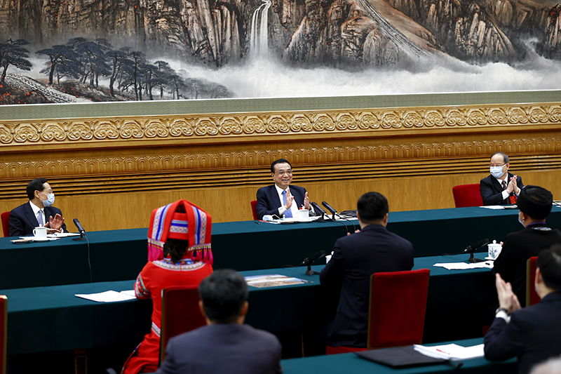 李克强5月23日上午来到十三届全国人大三次会议广西代表团参加《政府工作报告》审议。总理说,我们发展的目的就是为了改善和保障民生。反过来讲,我们发展的源泉也来自人民群众。有亿万人民群众勤劳智慧、坚韧不拔地奋斗打拼,就能不断创造社会财富,实现国家富强。此次《政府工作报告》紧扣民生,把保居民就业、保基本民生、保市场主体等“六保”放在突出位置,不论是采取多种措施助企稳岗,还是扩大失业保险和低保保障范围,都是为了兜住最基本的民生底线。这样也能支撑带动消费。消费与民生最直接相关,目前消费已在我国经济发展中起主导作用。过去我们强调,稳增长是为了保就业、保民生,现在反过来说,保住就业、保住民生就能稳增长。这是我们正在探索的一条新路子。