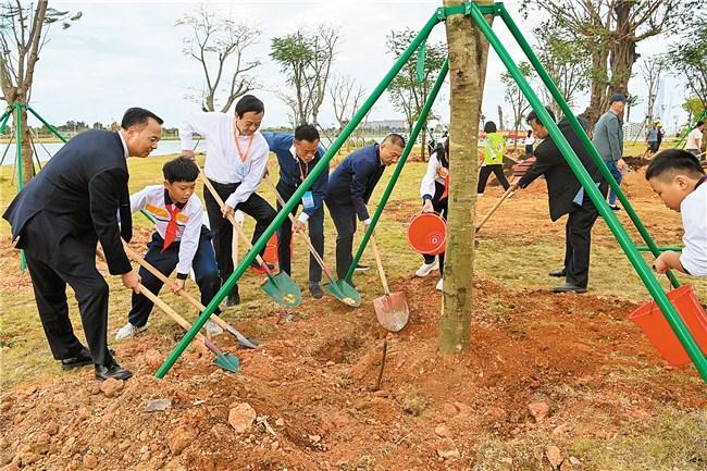 11月18日下午,正值第二十二届国际潮团联谊年会、第十届世界潮商大会开幕在即,莅汕与会的潮团潮商和海内外侨胞代表相聚在海明公园,共同参加“潮聚向汕 海明潮韵”——潮团潮商主题植树活动,以实际行动助力绿美汕头生态建设,留下寻根故里、血脉相连的美好见证。市委书记温湛滨,市委副书记、市长陈涛,中国侨商联合会会长、泰国正大集团资深董事长谢国民,国务院参事、中国侨联原副主席李卓彬,国际潮团总会主席谢泽生、执行主席陈幼南等参加活动。