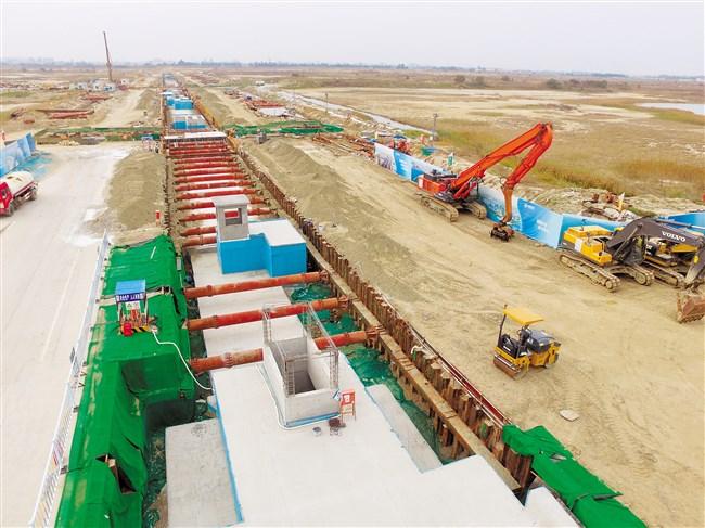 东海岸新城综合管廊是粤东地区首个大型城市地下综合管廊项目,也是全国首例在填海造陆区域建设的综合管廊,全长约22.64公里。其中,新溪片区15.55公里,塔岗围片区7.09公里,总投资超过25亿元,采用PPP合作模式由央企中国交建投资建设。去年3月份开工的试验段是新溪片区三纵三横主干网第一纵的起始段,位于新溪片区SN八路,总长661米。