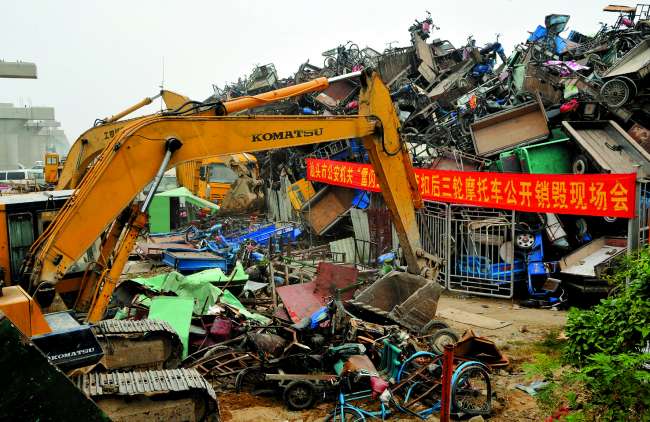 为进一步推进交通秩序提升行动,切实加大对非法后三轮车辆的打击力度,展示交警部门“雷闪三号”打击后三轮成果,昨天上午,市公安机关举行公开销毁非法后三轮现场会,对“雷闪三号”专项行动及各单位依法查扣、没收的后三轮进行现场公开销毁。