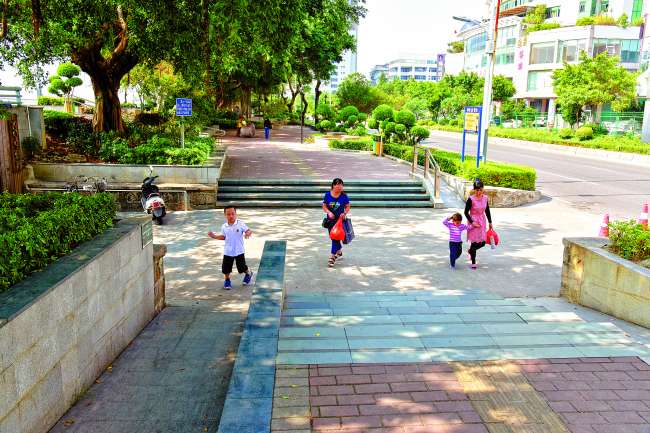 本次改造共补齐13个码头12处台阶,完善8条连接飘台小径,同时维修破损石板、步道砖、木板等。改造完成的观海长廊,真正实现了自东向西步行的畅通无阻,休闲散步的市民直接通过新增设的台阶、重新修缮的步道砖穿过码头开口,再也不用绕道经过。为他们提供了极大的步行便利,同时也让他们休闲娱乐期间的人身安全得到了最大保障。