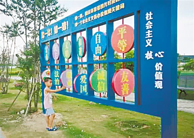 践行社会主义核心价值观,它是实实在在的身边事,从小孩子抓起,让它植根于孩子心中尤其重要。近日,汕头市儿童公园展示新面貌,24字社会主义核心价值观的内容以新颖独特且趣味的形式展示在小朋友眼前。为少年儿童从小自觉培育和践行社会主义核心价值观提供了学习的机会。