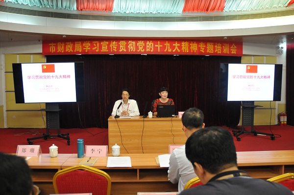 为深入学习贯彻党的十九大精神,迅速掀起学习宣传贯彻党的十九大精神的热潮,11月17日,市财政局举办学习宣传贯彻党的十九大精神专题培训会,邀请市委宣讲团成员、市委党校林丹华副教授作专题辅导,局全体干部职工参加培训。