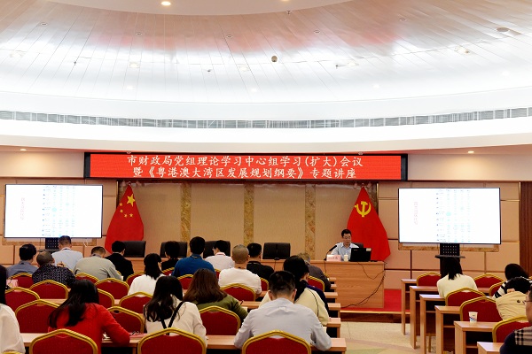 为进一步深入贯彻落实习近平总书记关于粤港澳大湾区建设重要论述精神和对广东重要讲话、重要指示批示精神,4月19日,市财政局召开局党组理论学习中心组学习(扩大)会议专题学习《粤港澳大湾区发展规划纲要》,会议邀请汕头大学商学院教授、粤台企业合作研究院副院长、市委宣讲团成员胡少东教授作专题讲座。胡教授分别从粤港澳大湾区建设的重大意义、战略定位、发展目标、空间布局、重点建设工作以及粤东地区融入粤港澳大湾区建设的工作思路等几个方面深入阐述了《粤港澳大湾区发展规划纲要》的主要内容。