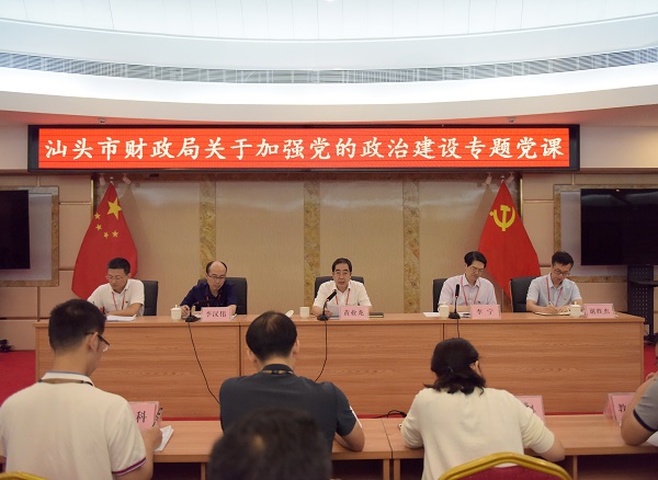 为深入贯彻习近平新时代中国特色社会主义思想和党的十九大精神,认真落实习近平总书记关于加强党的政治建设的重要讲话和重要指示精神,坚持不懈加强党的政治建设,教育引导全局党员深化对党的政治建设的认识,6月19日,市财政局党组书记、局长黄业龙同志以“提高政治站位 强化政治担当 努力打造党的政治建设成效明显的模范机关”为题,从政治建设的重要性以及强化政治担当推进党的政治建设两方面为全局干部职工上了一堂精彩的专题党课。
