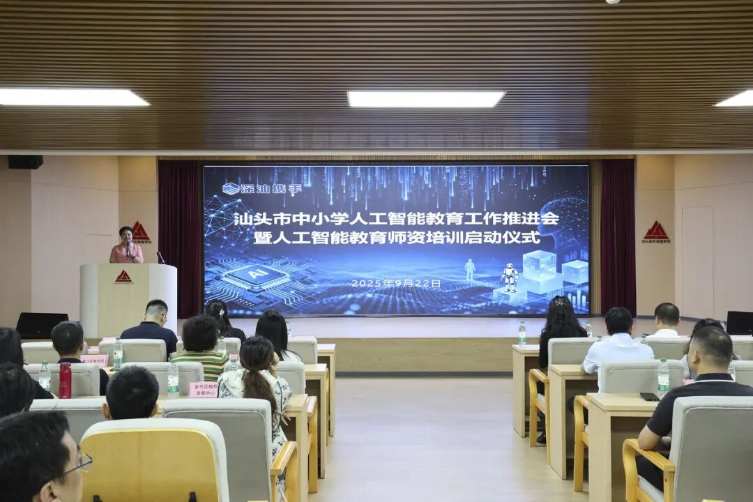 为进一步深入贯彻落实《汕头市人工智能赋能基础教育行动方案(2025—2027)》,推动我市教育数字化、智能化转型,2025年9月22日上午,汕头市中小学人工智能教育工作推进会暨人工智能教育师资培训启动仪式在汕头金中海湾学校顺利举行。本次活动采取线上线下相结合的方式,为全市师生带来了一场内容丰富的人工智能教育“盛宴”。汕头市教育局、深圳对口帮扶协作汕头指挥部、市教师发展中心相关领导,深圳市教育信息技术中心、汕头移动、深圳移动、各区县教育局、教师发展中心以及80所人工智能教育试点校代表同志出席活动。