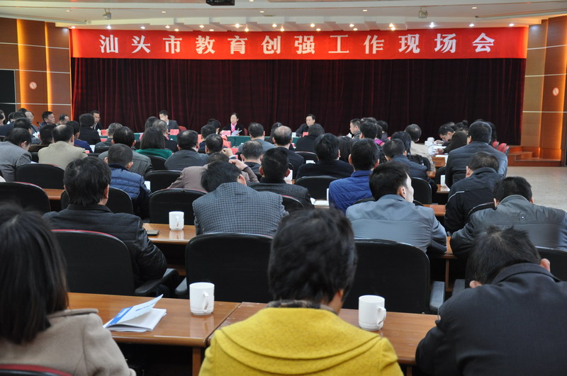 2015年1月15日上午,汕头市教育创强工作现场会在濠江区政府举行。副市长赵红,市政府副秘书长黄汉文,市教育局、财政局、人社局有关领导,2015年有创建任务的各区县政府分管教育工作的领导及教育局、财政局、人社局的主要领导,澄海区上华镇等23个镇(街道)党政的主要领导,以及市教育局相关职能部门负责人约160人出席了会议。会议由市政府副秘书长黄汉文主持。