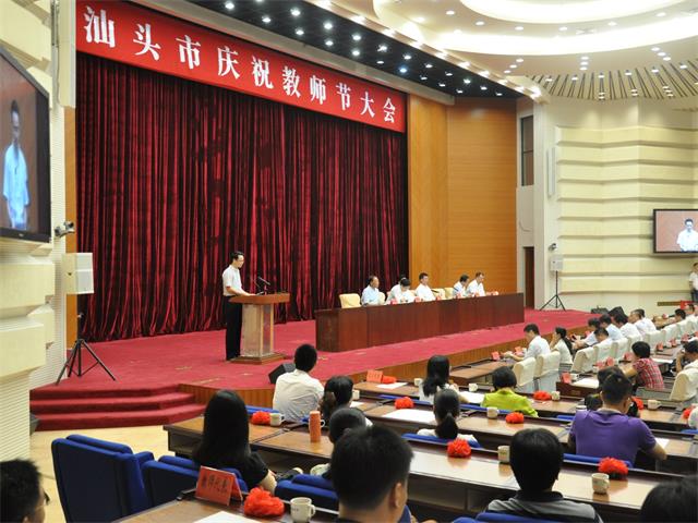 9月8日上午,汕头市委、市政府在市委会议中心大会堂隆重召开2015年汕头市庆祝教师节大会。市委、市政府、市人大常委会、市政协、市纪委有关领导出席会议。大会由市政府郑通声常务副市长主持。