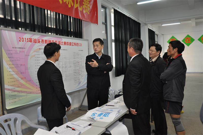12月17日下午,由市总工会、市教育局联合主办、市实验学校承办的2015年汕头市教师乒乓球比赛在市实验学校文体楼落下帷幕,并举行颁奖仪式。市教育局、市教育工会领导为获奖队伍颁奖。