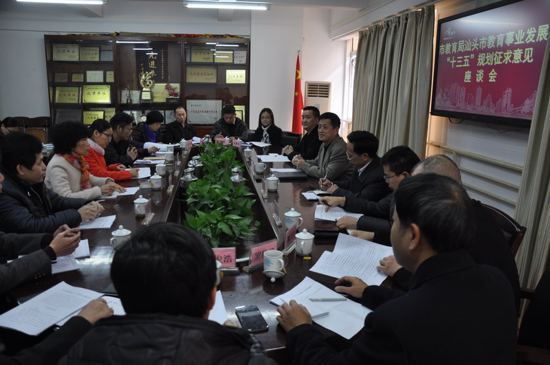 1月18日,汕头市教育局召开了汕头市教育事业发展“十三五”规划征求意见座谈会,邀请市民盟、市民进的有关负责同志及相关代表,商讨有关工作,征求对《汕头市教育发展“十三五”规划(征求意见稿)》(下简称“十三五”规划)的意见和建议。市教育局党委书记、局长胡冬同志主持会议并讲话,市教育局有关领导,民盟汕头市委会、民进汕头市委会领导及部分民盟盟员代表和民进会员代表等20余人参加会议。