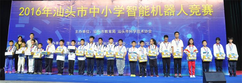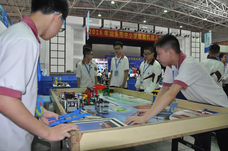 4月17日,由汕头市教育局和汕头市科学技术协会联合主办,由澄海区教育局、澄海区科学技术协会、汕头科技馆、澄海区职业技术教育中心、汕头市青少年科技教育协会、汕头市教育学会信息技术专业委员会、万格·乐博士教育装备科技有限公司协办的“2016年汕头市中小学智能机器人竞赛”在澄海职教中心隆重举行。