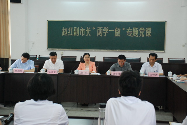 在了解汕头教育系统 “两学一做”学习教育的开展情况之后,赵红同志向与会人员介绍了汕头市新任市委书记陈良贤同志及新任市长刘小涛同志的具体情况,并表示新一届汕头市委市政府领导班子将续写振兴汕头经济的发展蓝图,这极大地鼓舞了在座党员干部对汕头发展的信心。紧接着,赵市长为汕头侨中全体党员干部上了一节“两学一做”学习教育专题党课。赵市长强调,党章是全党必须遵循的总规矩,学习党章党规,必须着眼明确基本标准、树立行为规范。作为共产党员,必须尊崇党章、学习党章、遵守党章、维护党章。党规党纪是对党章的延伸和具体化,是规范党员行为的具体遵循,党员干部要强化党章意识、纪律意识、宗旨意识,把党的各项规定落实到行动到上来,落实到推动汕头加快振兴发展事业中来,依靠人民群众的智慧和力量不断开创工作新局面。作为一名合格的共产党员就要讲政治、有信念,讲规矩、有纪律,讲道德、有品行,讲奉献、有作为,在任何岗位、任何地方、任何时候、任何情况下都铭记党员身份,听从党的指挥,积极为党工作,立足岗位做贡献。