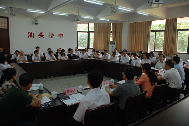 赵红同志一行在汕头侨中学校领导的陪同下参观了侨中校园,实地察看侨中“两学一做”学习教育和党建工作有关情况,随后召开了座谈会,会议由市教育局纪委书记金春林同志主持,市信用办主任张建奎同志、市委组织部组织一科主任科员林典雄同志、市教育局党委办主任李恒同志等、汕头侨中领导班子及50余名党员教师参加了会议。