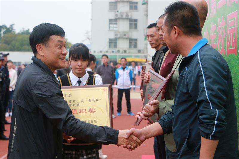 闭幕式上,林依民副市长等领导为获奖运动员颁奖,本次联赛自始至终在热烈、欢乐氛围中进行。本届比赛,各运动队同心同德、坚韧顽强、拼搏进取,赛出友谊、赛出成绩、赛出风格,展示我市青少年学生奋发向上的精神面貌和文明友爱的品德风尚。我市通过举办足球联赛,不仅加深运动队之间、兄弟学校之间的了解,增进了彼此间的友谊,更重要的是通过比赛激发了青少年学生的拼搏精神,充分展示了青少年学生团结协作、健康向上的良好精神风貌,促进青少年学生身心健康发展,充分展示了我市学校体育工作所取得的成就。