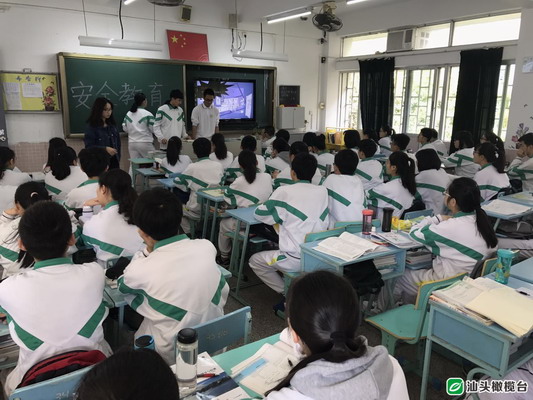 而在学校各个课室内也开展起“安全教育”主题班会,在这个教室内,两位同学自编自演,通过情景模拟的方式,向全班同学讲解在各种紧急情况下得应急措施,生动有趣的形式让课堂气氛十分活跃,教室里时不时传出阵阵笑声。