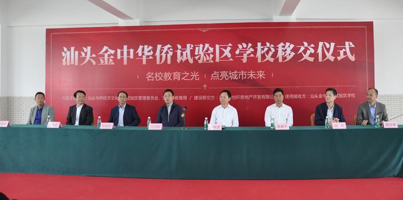4月15日上午10:00,东海岸新城首座学校──汕头金中华侨试验区学校落成移交仪式在学校会议厅隆重举行。