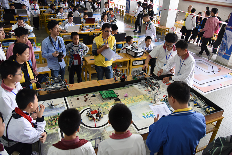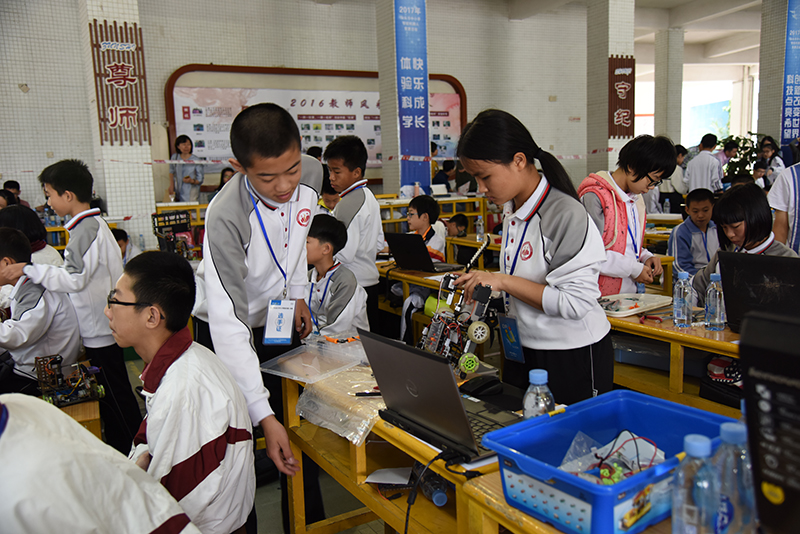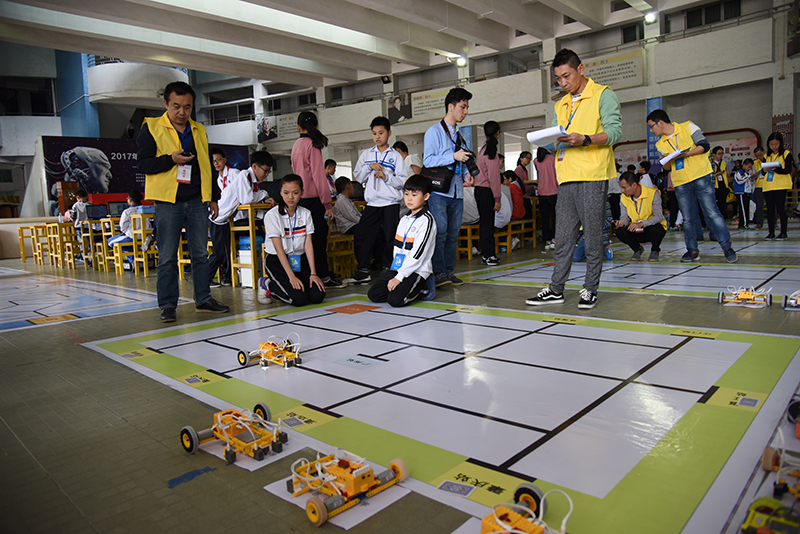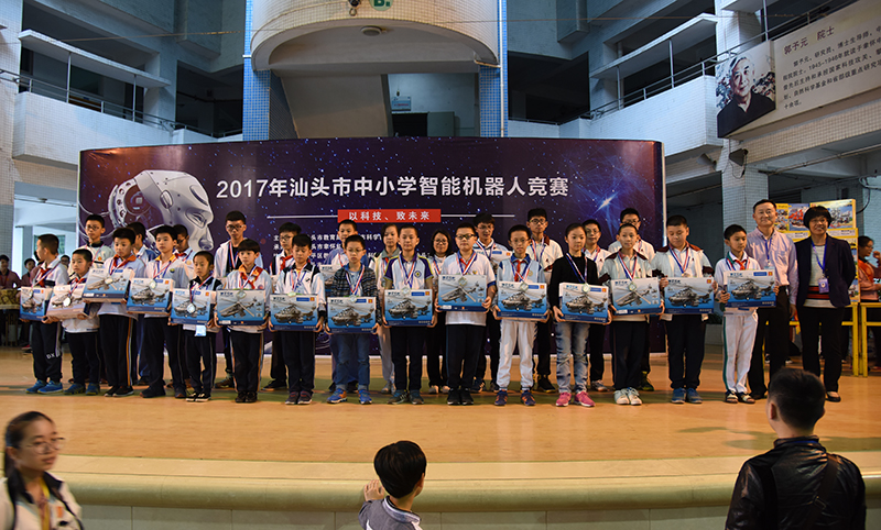 4月23日,由汕头市教育局、汕头市科学技术协会联合主办,汕头市聿怀初级中学承办,金平区教育局、金平区科学技术协会、汕头市青少年科技教育协会、汕头市教育学会信息技术专业委员会、广东乐博士教育装备有限公司协办的2017年汕头市中小学智能机器人竞赛活动在汕头市聿怀初级中学顺利举行。