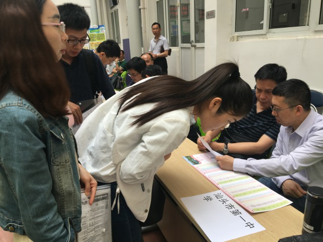 为进一步提高我市教师队伍高层次人才比例,优化人才结构,加强教师队伍建设,4月19日至21日,由林依民副市长带队,市教育局、市人社局组织各区县教育局,以及汕头市金山中学、汕头市第一中学、广东汕头华侨中学、汕头市实验学校、汕头市潮阳实验学校、汕头技师学院等学校,到华中师范大学、湖南师范大学、华南师范大学等部属高等师范院校招全日制普通高校硕士研究生及以上学历毕业生到有关普通高中等学校任教。经统计,各招聘单位共与59名参加招聘人员签订就业协议,与126名参加招聘人员达成就业意向。